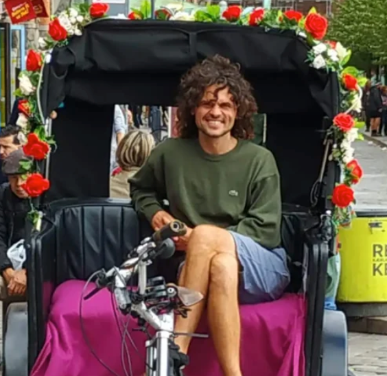 Cand.merc. fra CBS i Creative Business, globetrotter og polyglot (taler 7 sprog flydende). Baseret i København siden 2008. Med en passion for kaffe og matcha importerer han udvalgte mærker til Danmark fra Brasilien og Japan. Han er medstifter og fungerer som bindeled mellem den virkelige verden og cykeltaxaens magiske univers.